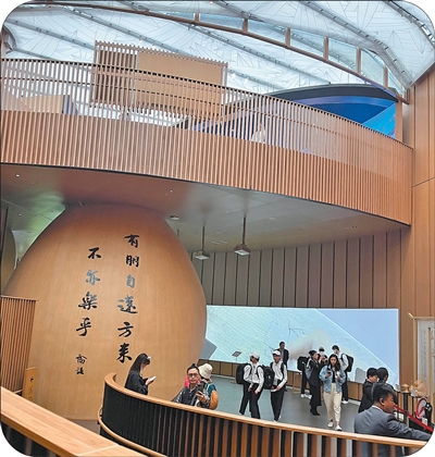 大阪世博会中国馆内,墙面上的巨型书法“有朋自远方来,不亦乐乎”,传达中国热情好客、文明交流的文化理念。